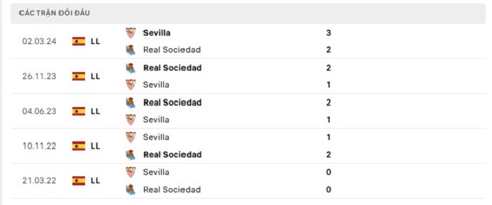Bảng bóng đá trận đấu Sevilla vs Real Sociedad