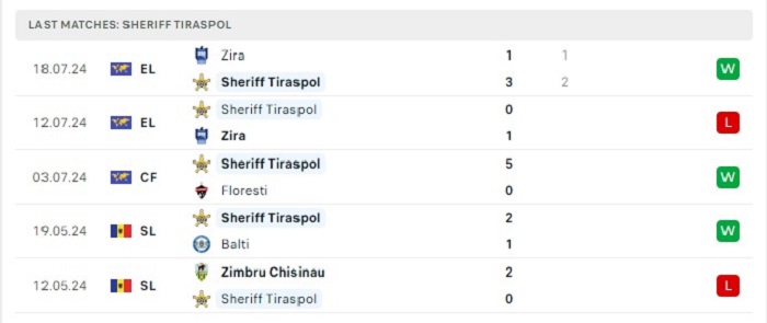 - Phong độ Sheriff Tiraspol
