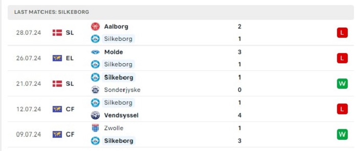 Phong độ gần đây Silkeborg vs Molde