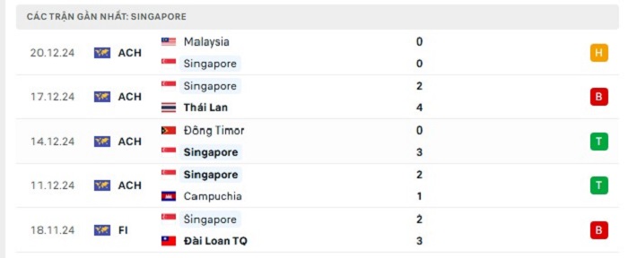 Bảng  bóng đá trận đấu Singapore vs Việt Nam