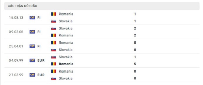 Lịch sử đối đầu của Slovakia vs Romania