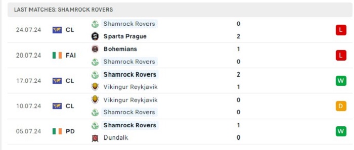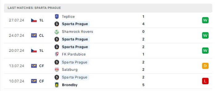 Phong độ gần đây Sparta Praha vs Shamrock Rovers