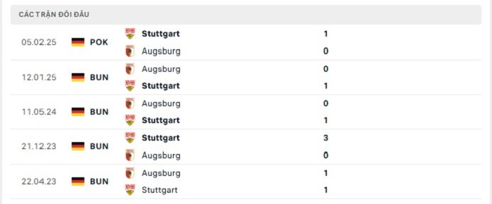 Phong độ gần đây Stuttgart vs Augsburg