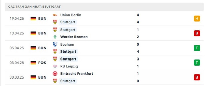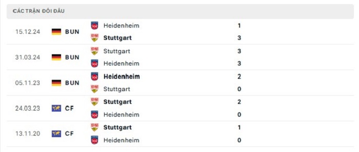 Phong độ gần đây Stuttgart vs Heidenheim