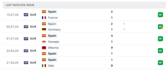 Phong độ gần đây Tây Ban Nha vs Anh