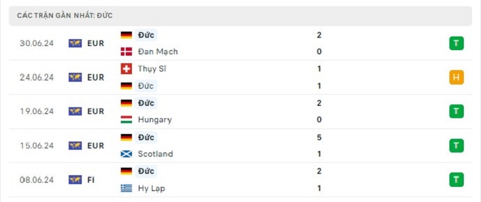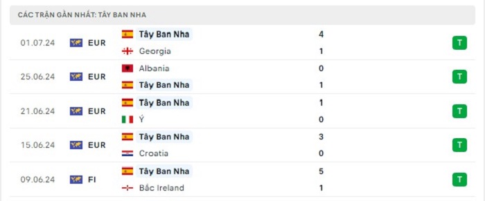 Phong độ gần đây Tây Ban Nha vs Đức