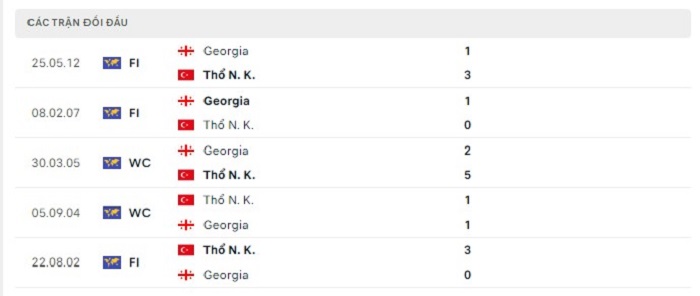 Lịch sử đối đầu của Thổ Nhĩ Kỳ vs Georgia