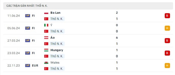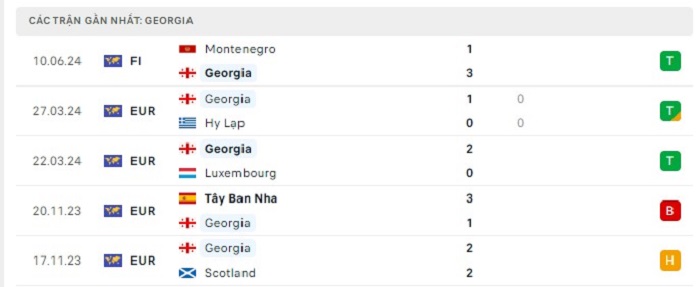 Phong độ gần đây Thổ Nhĩ Kỳ vs Georgia