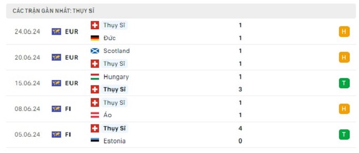 Phong độ gần đây Thụy Sĩ vs Ý