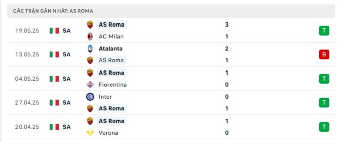 • Phong độ AS Roma