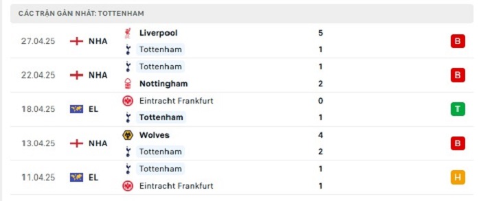 - Phong độ Tottenham Hotspur