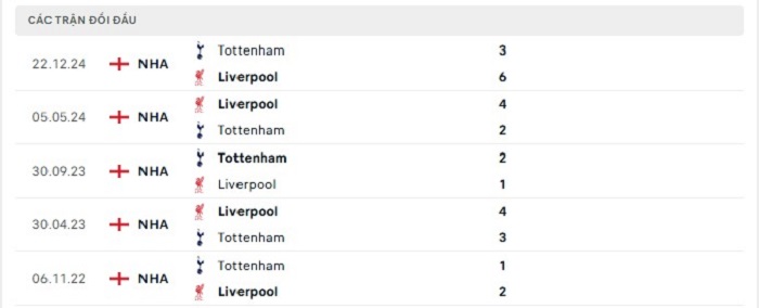 Phong độ gần đây Tottenham vs Liverpool