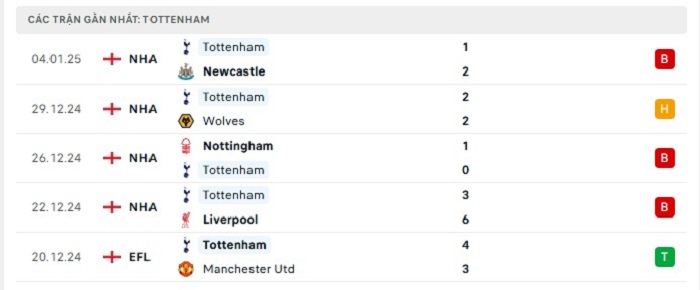 - Phong độ Tottenham