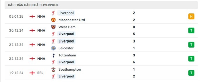 - Phong độ Liverpool