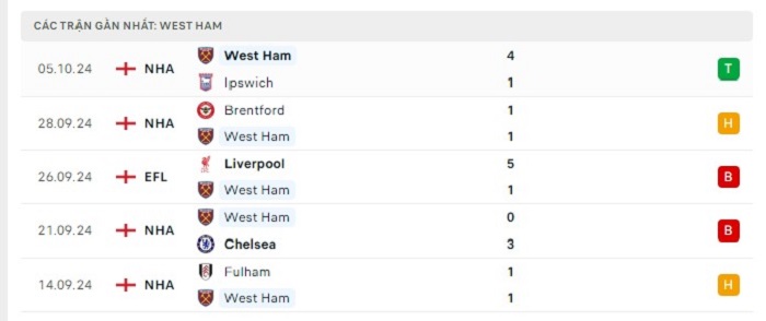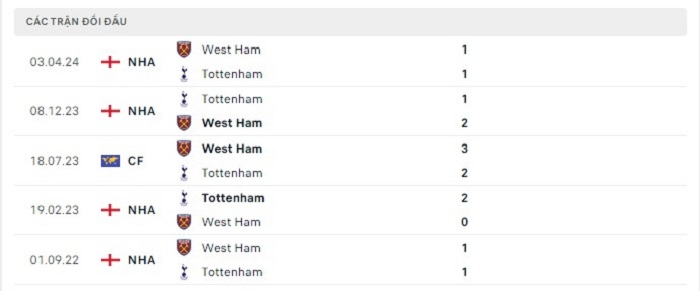 Lịch sử đối đầu của Tottenham vs West Ham United