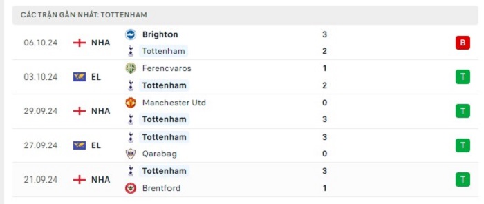 Bảng  bóng đá trận đấu Tottenham vs West Ham United