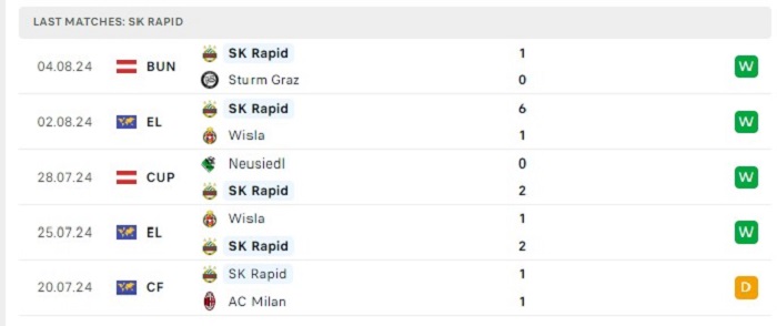 - Phong độ Rapid Wien
