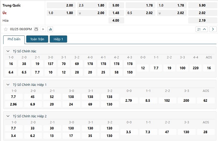 Soi kèo tỷ số Trung Quốc vs Australia