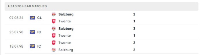 Cả 3 lần gặp nhau giữa Twente và Red Bull Salzburg trong quá khứ cũng đã diễn ra với khả năng ghi bàn tương đối cao khi đều cód dược từ 3 bàn thắng trở lên. Red Bull Salzburg là đội bóng cũng thường thể hiện lối chơi đầy phóng thoáng của mình ở các trận đấu của họ, chính vì vậy mà tỷ số trận đấu của trận lượt về này hoàn toàn có thể tiếp tục xuất hiện nhiều trong trận đấu của cả hai đội.