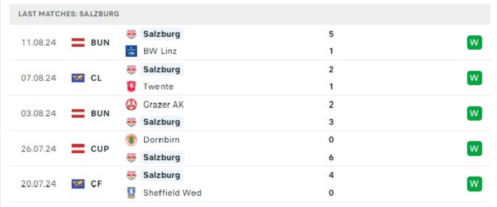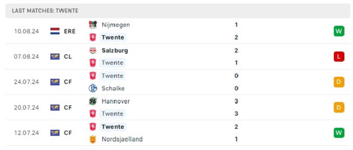Phong độ gần đây Twente vs Red Bull Salzburg