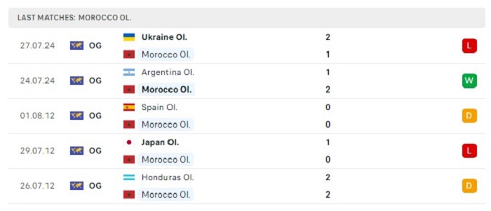 Phong độ gần đây U23 Ma-rốc vs U23 Iraq