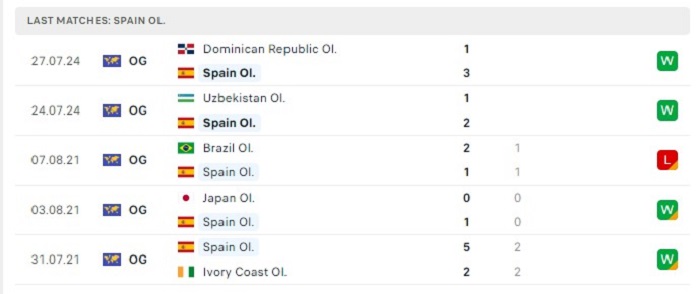Phong độ gần đây U23 Tây Ban Nha vs U23 Ai Cập