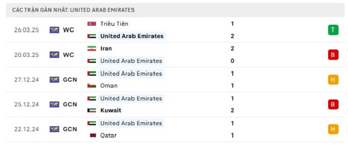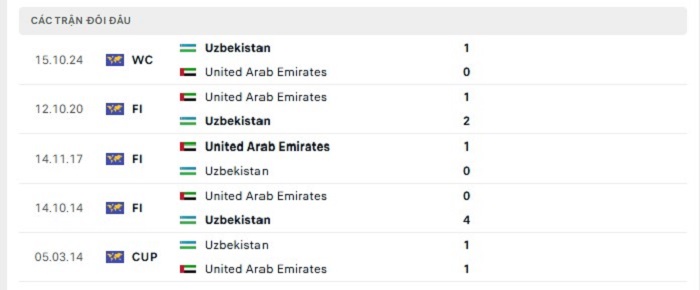 Phong độ gần đây UAE vs Uzbekistan