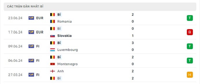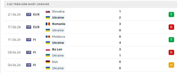Phong độ gần đây Ukraine vs Bỉ