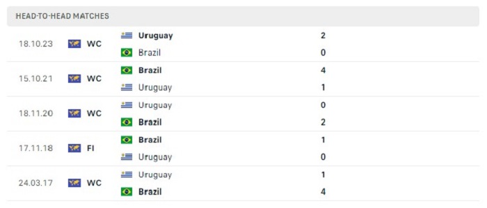 Thống kê có thể thấy được 3 trong 4 lần gặp nhau gần đây của hai đội có tỷ lệ ghi bàn trong trận tương đối thấp, điều này cũng đã thấy được sự chắc chắn trong lối chơi của cả hai đội. Uruguay sở hữu hàng thủ đang thi đấu ổn định ở thời điểm này trong khi với Brazil hàng công và phong độ lại chưa thực sự tốt, bởi vậy mà tỷ số trận đấu sắp tới cũng sẽ khó có thể kỳ vọng vào một thế trận đôi công của cả hai đội.