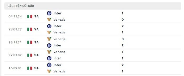 Thống kê trong quá khứ những trận gặp nhau giữa Venezia và Inter Milan vốn cũng không có quá nhiều bàn thắng ghi được, cụ thể là cả 5 trận gặp nhau trước đây của hai đội cũng chỉ xuất hiện từ 3 bàn thắng ghi được trở xuống. Điểm mạnh của Inter Milan là hàng thủ thi đấu chắc chắn trên sân khách mùa này thì khả năng ghi bàn của Venezia sẽ càng khó khăn hơn, vì vậy mà tỷ số trận đấu sắp tới của hai đội sẽ khó có thể xuất hiện nhiều trong trận.
