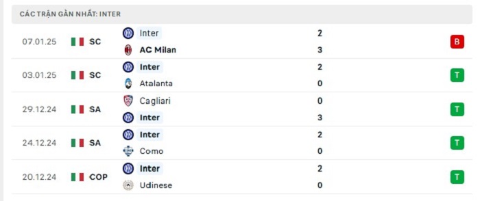 - Phong độ Inter Milan