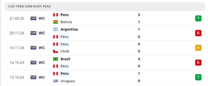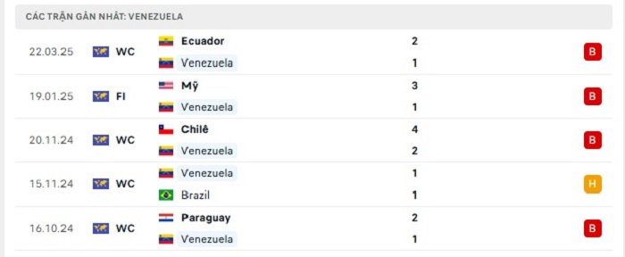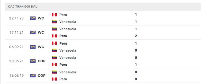 Phong độ gần đây Venezuela vs Peru
