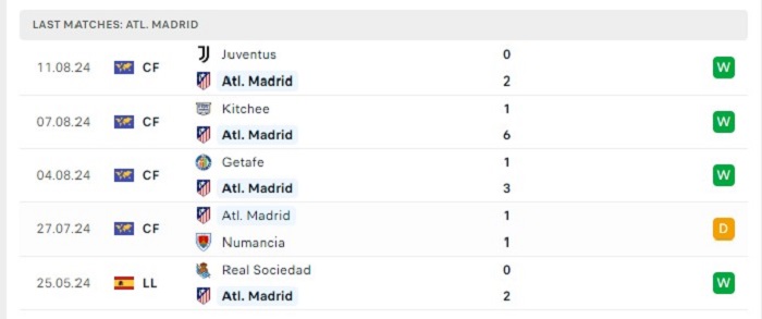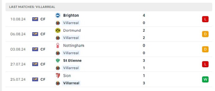 Phong độ gần đây Villarreal vs Atletico Madrid