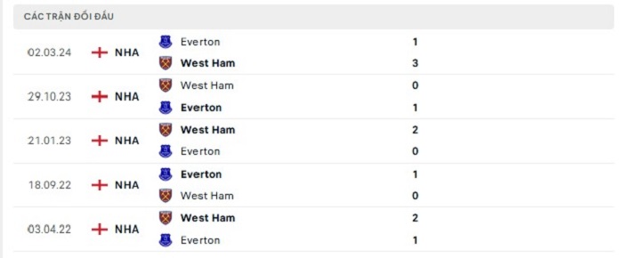 Có thể thấy được giữa West Ham và Everton trong quá khứ cũng không có quá nhiều chênh lệch với nhau, cụ thể là West Ham thắng 5 trong khi hoà 1 và thua 4 trước đối thủ này trong 10 lần gặp nhau gần đây. Hiện tại với cơ hội sân nhà của mình “báu tạ” cũng sẽ có được những cơ hội cho mình trước Everton, nhất là khi mà phong độ gần đây của họ đang có được những mặt tích cực nhiều hơn trên sân nhà, do vậy mà khả năng thắng trận của West Ham cũng trở nên khả thi nhiều hơn.