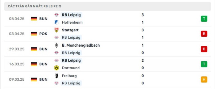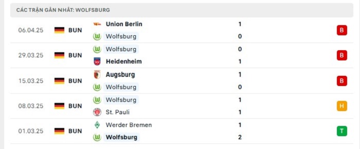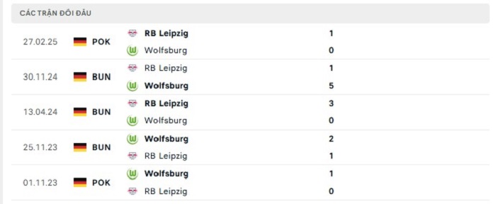 Phong độ gần đây Wolfsburg vs RB Leipzig